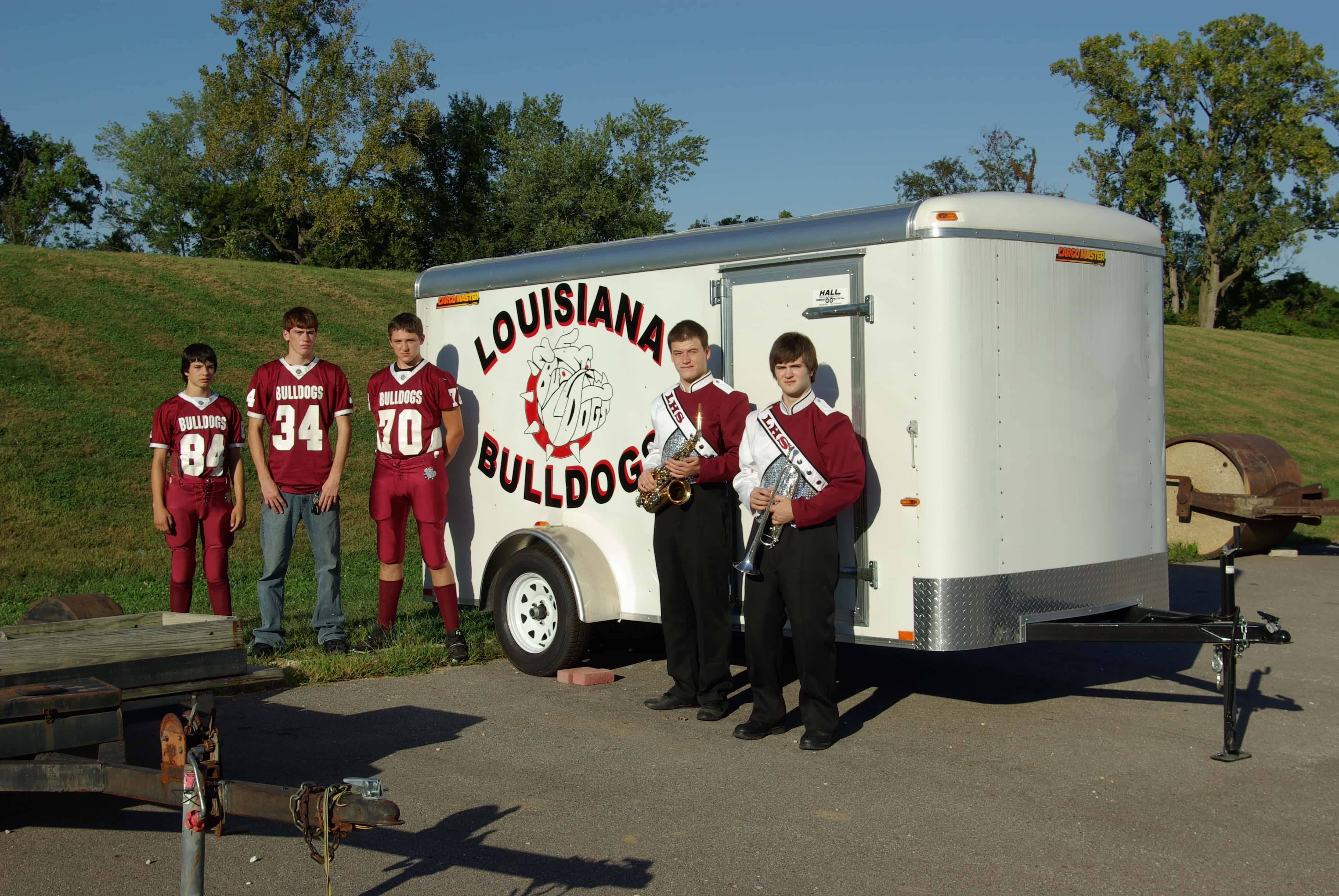 Pictured with the trailer are football players (l to r) Dakota Sies, FR, Brett