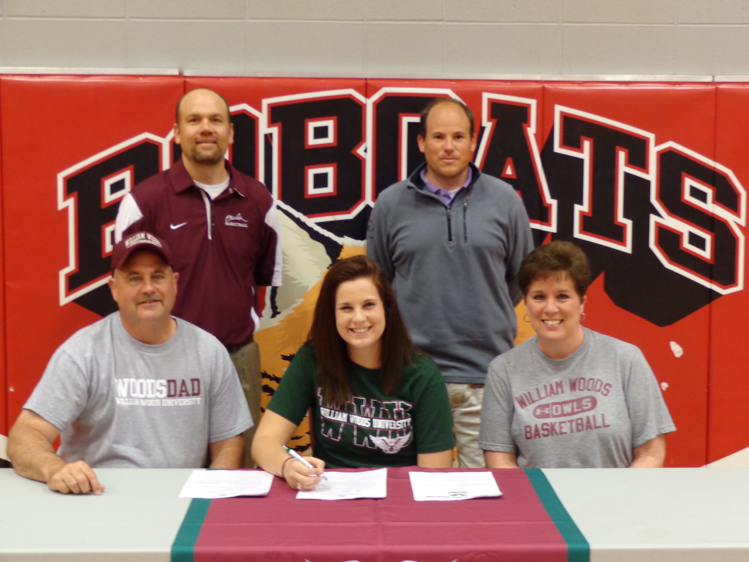 Bowling Green senior Kelsey Scherder signed a letter of intent to play basketball and track with William Woods University. Joining Scherder are her parents, Kevin and Lisa Scherder; Bowling Green girls basketball coach Bobby Spoonster and Owls Head Basketball Coach Don Chapla.