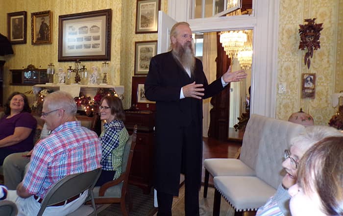 LOUISIANA, Mo. — Greg Wolk of the Missouri Humanities Council offered a free program on Ulysses S. Grant at the Louisiana home of Stephen and Pamela Moss on July 17. The presentation focused upon Grant’s five months of leadership in 1861 with the Union army during the Civil War. Wolk discussed four men who were potential nemeses for Grant, but said the general often sidetracked himself. In the end, Grant’s determination and good fortune put him on the path in leading the Union to victory and becoming the 18th President. Moss dressed for the occasion as Missouri U.S. Sen. John Brooks Henderson, who once owned the house and was the lawmaker who drafted and introduced the 13th Amendment outlawing slavery.