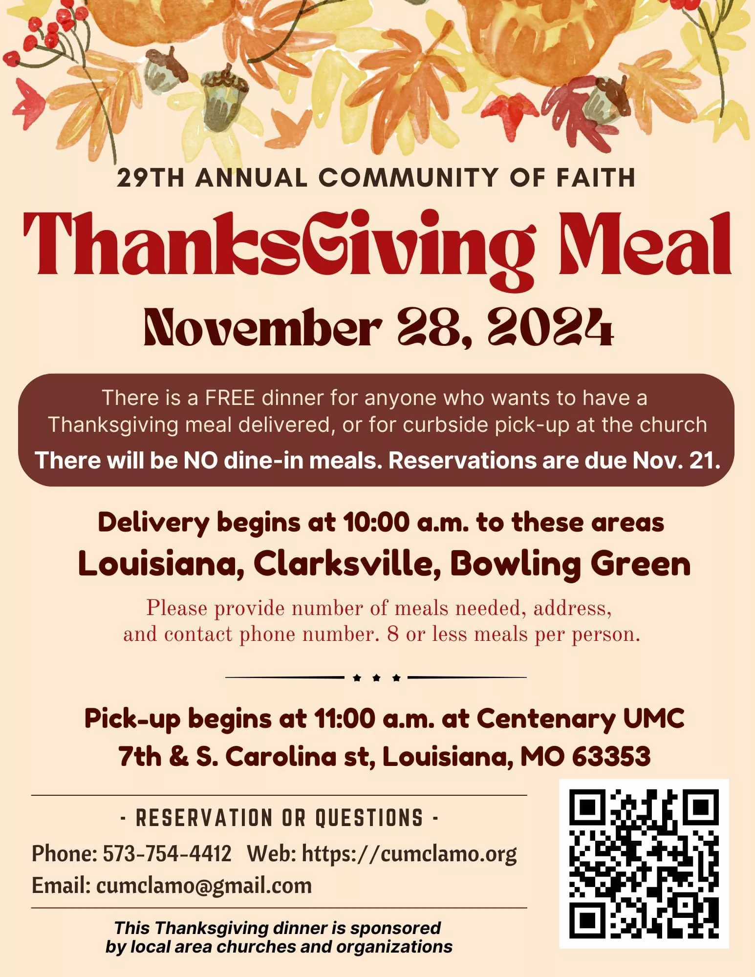 Reservations are due by November 21, there is no dine in option! Delivery is available.