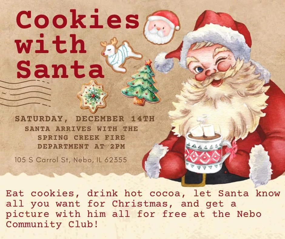 Santa will be coming to the Nebo Community Center via fire truck December 14th at 2pm. Bring your kids and your Christmas Wish List!